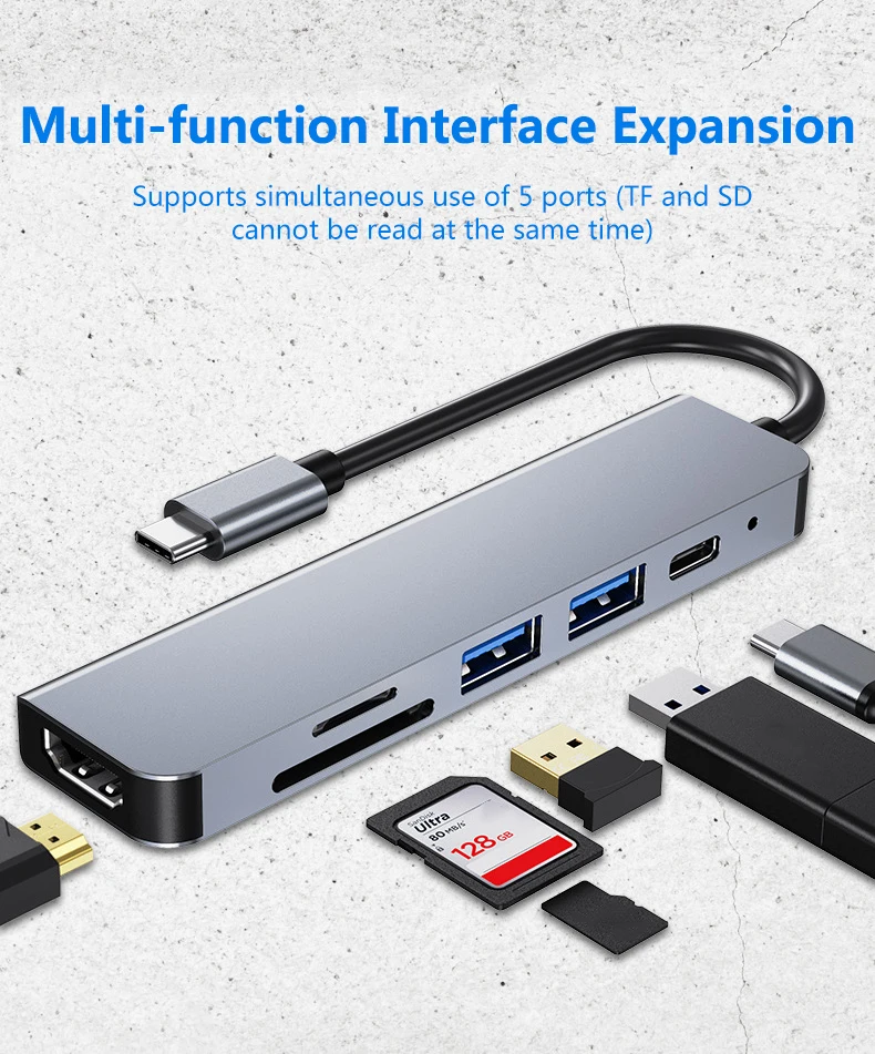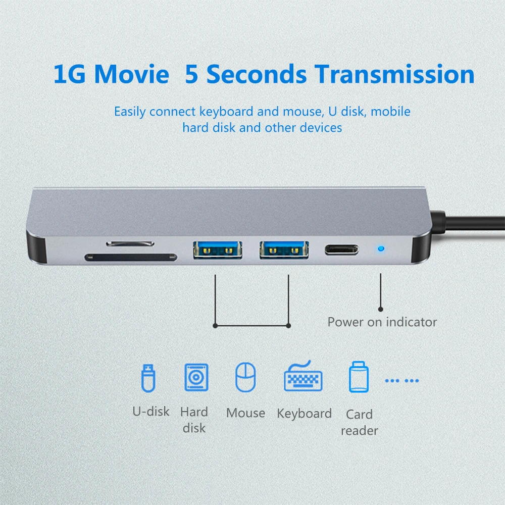 6-in-1 USB C Docking Station Hub OTG Adapter Splitter USB 3.0 Multiport Adapter for Charging Data for Laptop HDTV SD/Micro Card