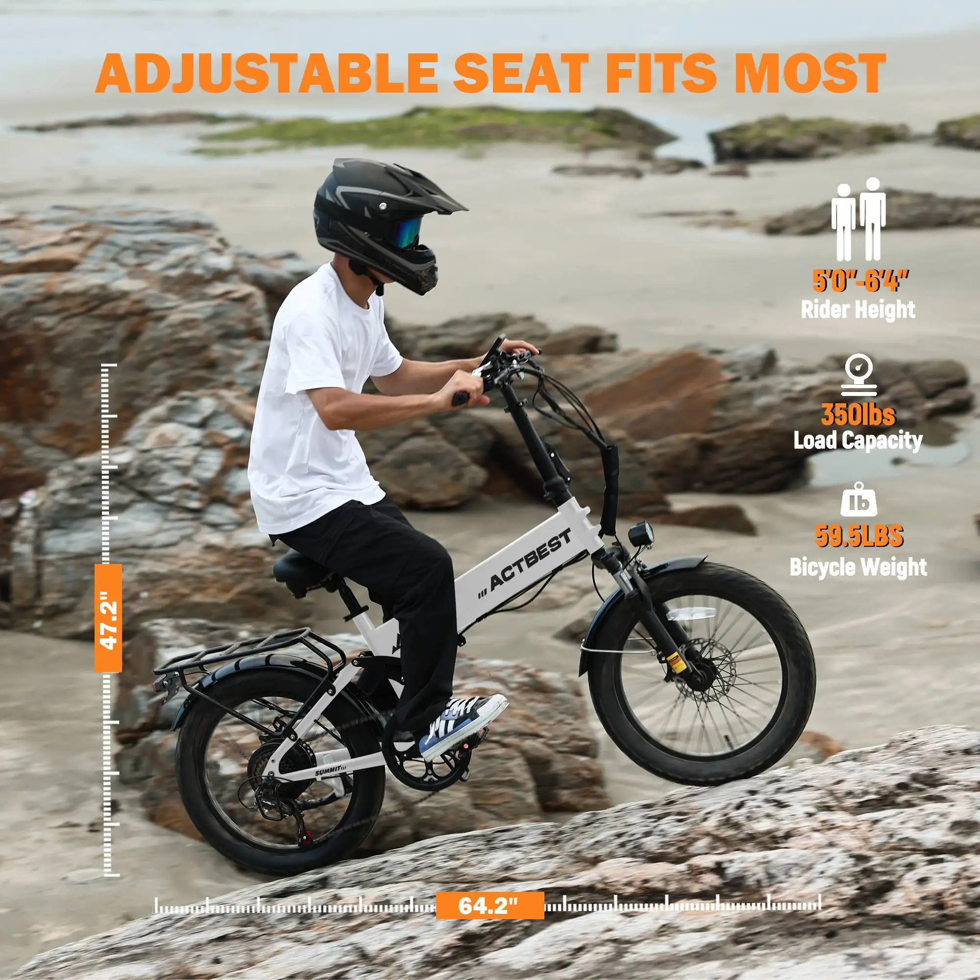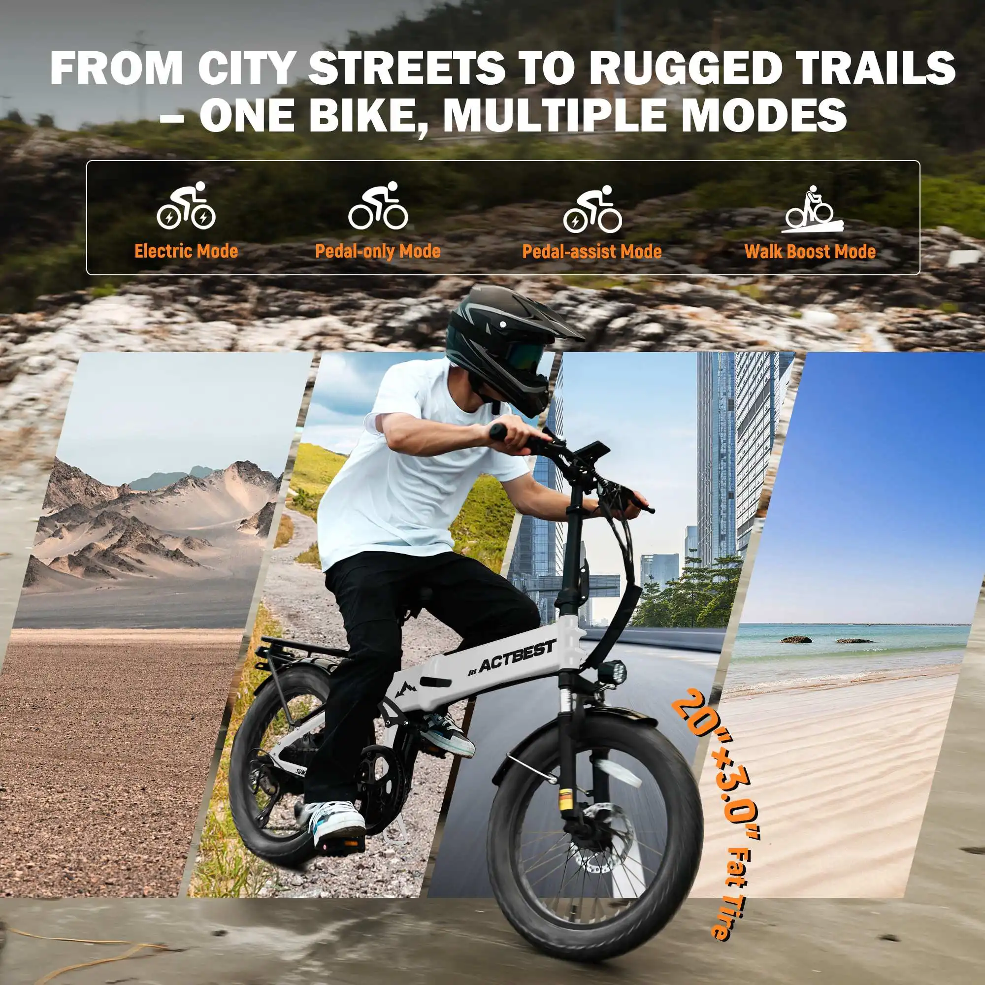 ACTBEST Summit 20 Inch Foldable Aluminum Fat Tire Electric Mountain Bike Ebike for Adults