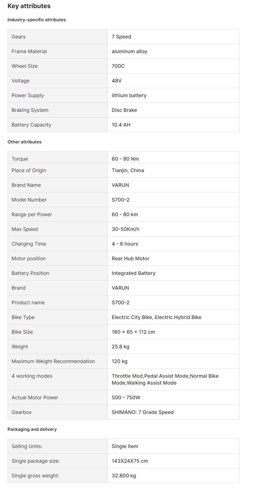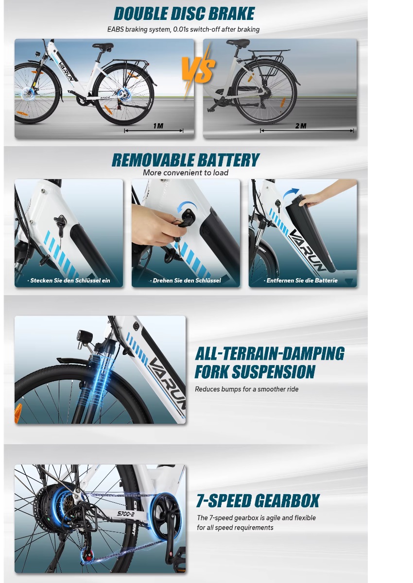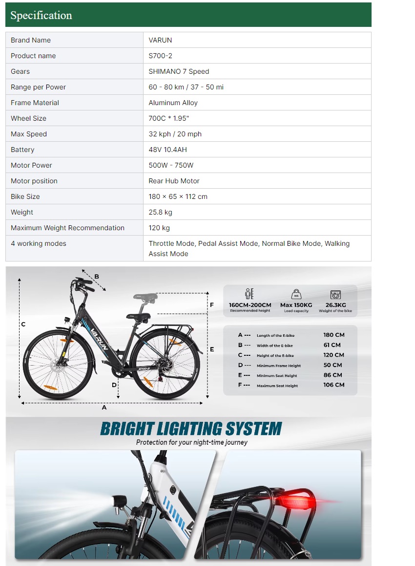 Be the first to review “E Bike Varun EU Warehouse Stock Electric Hybrid City Bicycle 48V 10.4AH Long Rang Step-Thru E bike Lithium Battery Aluminium Electric Bike Color: Black”