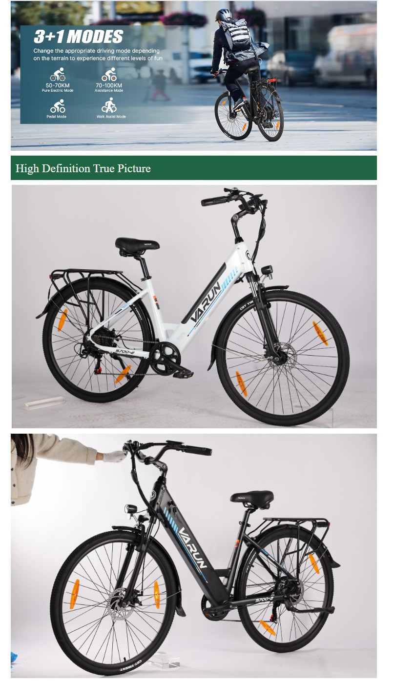E Bike Varun EU Warehouse Stock Electric Hybrid City Bicycle 48V 10.4AH Long Rang Step-Thru E bike Lithium Battery Aluminium Electric Bike Color: Black