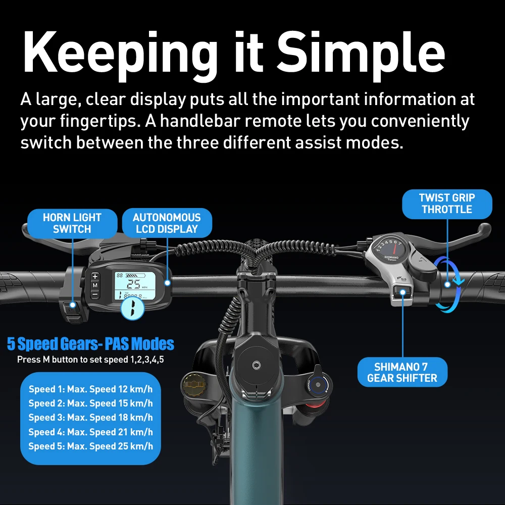 13-15Miles (Pure electric) 20-40 Miles(PAS Range)