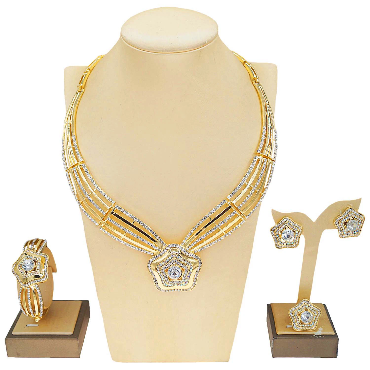 Image for :Factory Prices Fine Nigerian Jewelry 18 K Gold Plated Dubai Jewelry Sets Bracelets and Necklaces Women’s Jewelry For Wedding