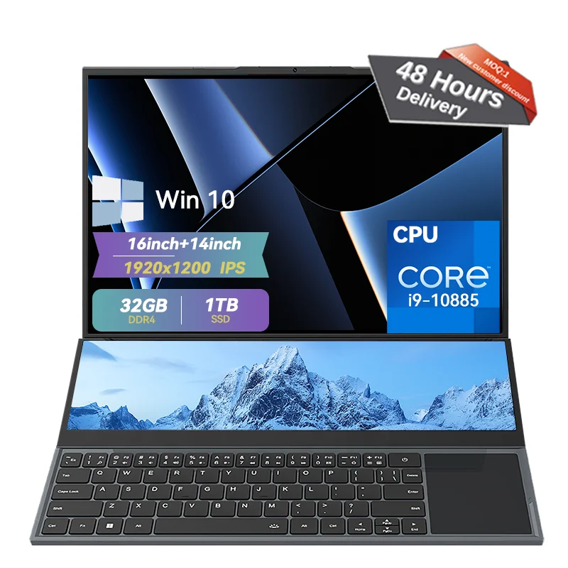 Gaming LaptopLaptop Dual Screen 16+14inch Touchscreen 1920×1200 CPU I7-9850H 8GB/16GB/32GB RAM 128GB-1TB SSD Brand New Win11