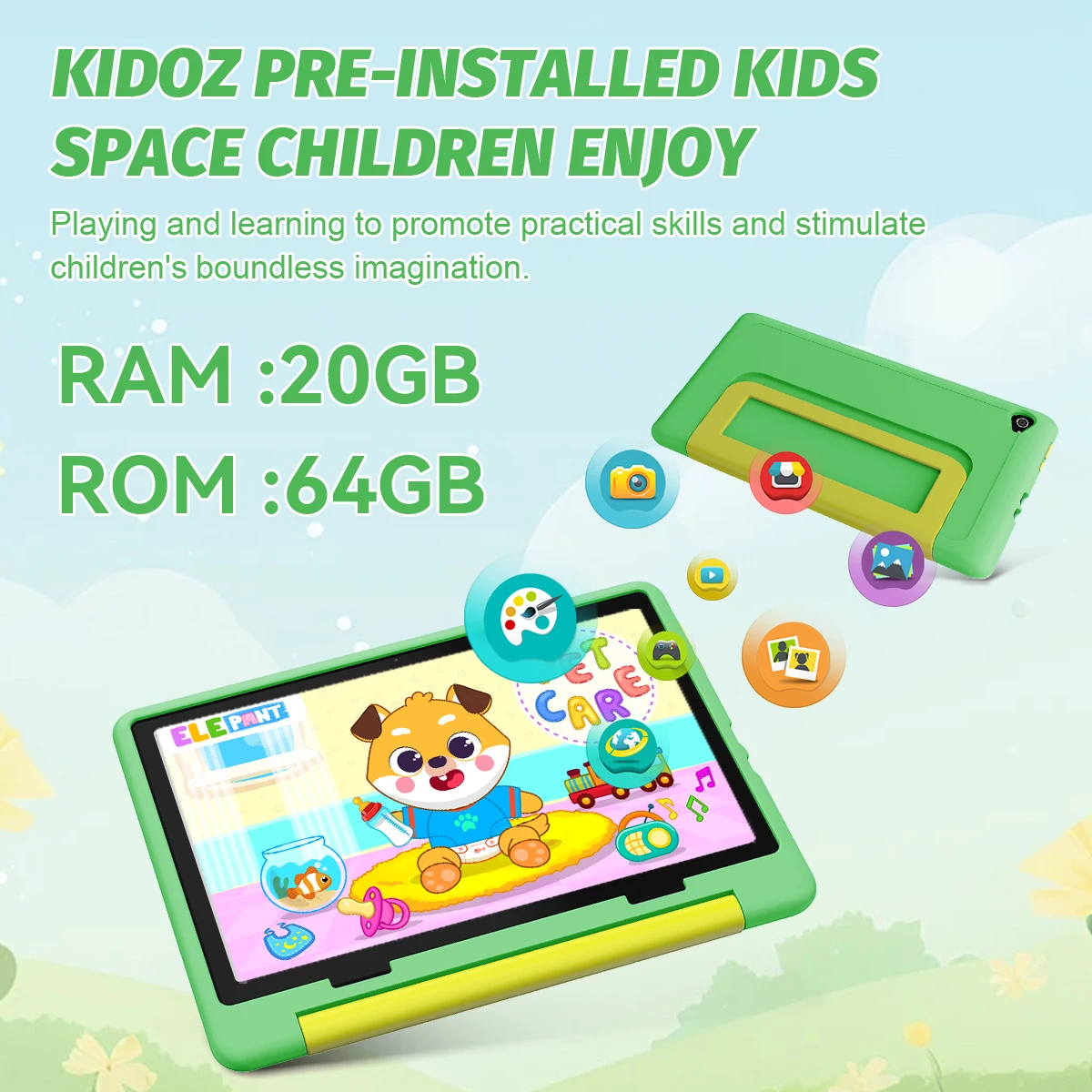 Kid Tablet 10Inch Android15 20GB RAM 64GB ROM 128GB Expandable 5000mAh 8-Core WiFi Bluetooth Children’s Gift KIDOZ Kids Software