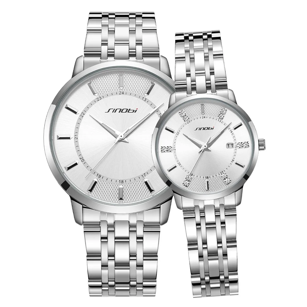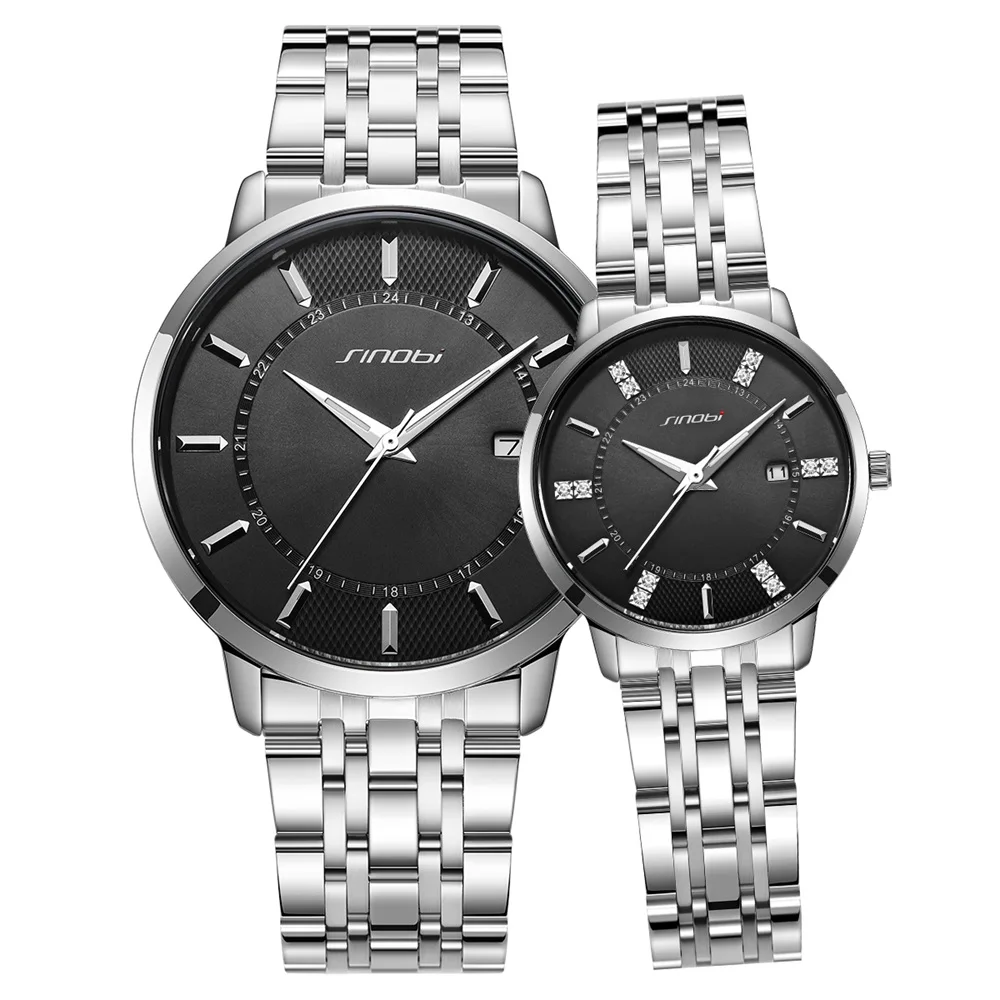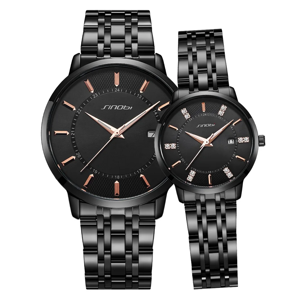 Luxury Fashion Alloy Couple Watch for Men and Women Waterproof Quartz Movement Stainless Steel Band Calendar Feature