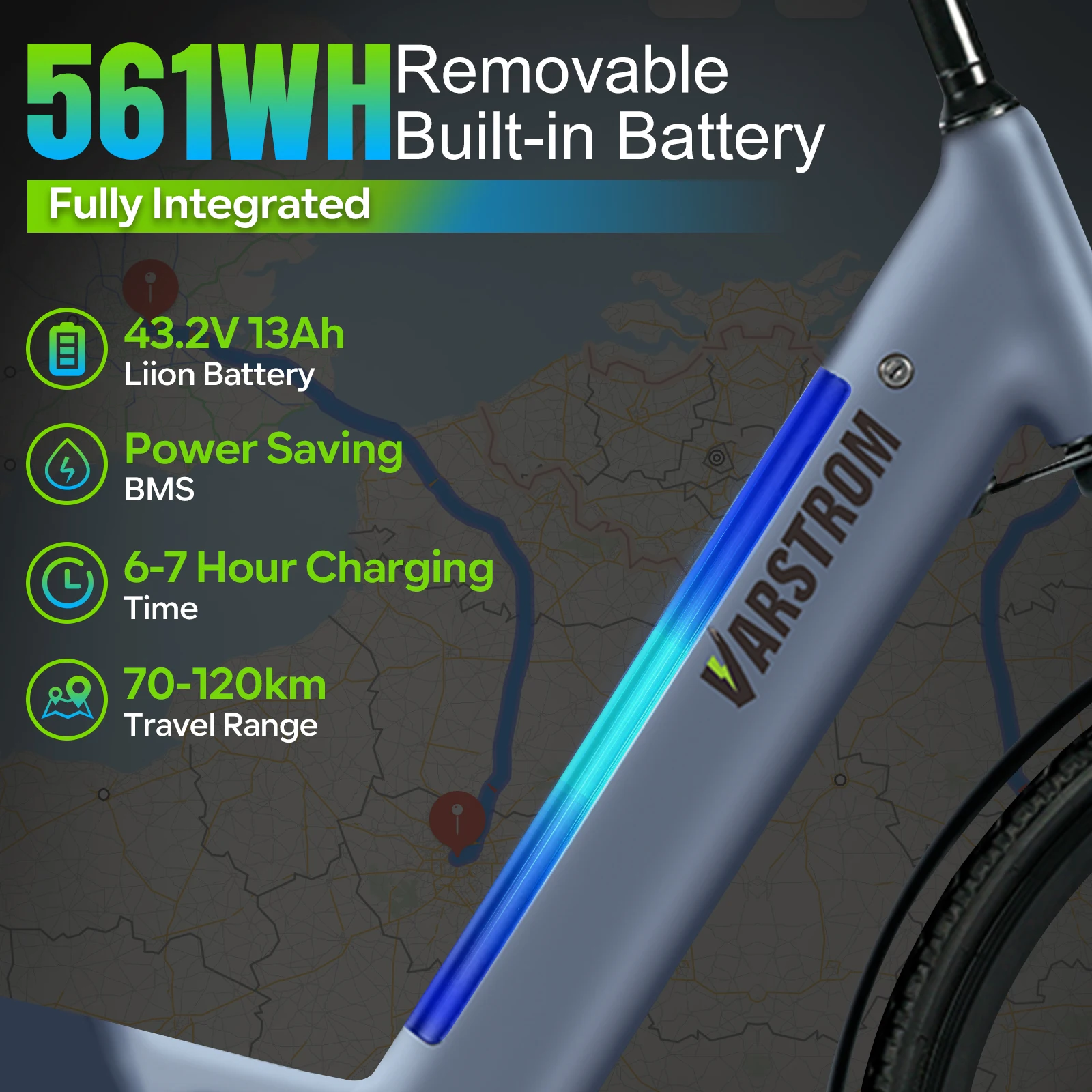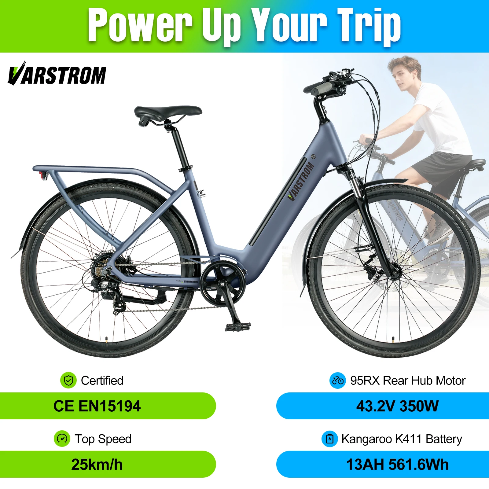 Varstrom Electric City Bike with 350W RX Rear Hub Motor 43.2V 13Ah Built-in Lithium Battery 7 Speed 700C 25KM/h Ebike
